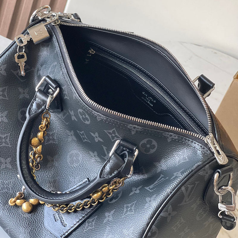 The Louis Vuitton Speedy Soft 30 Monogram Eclipse M15102 brings a modern, relaxed interpretation to one of LV’s most iconic silhouettes. Crafted from premium original material in the sleek Monogram Eclipse pattern, this Speedy Soft edition features a supple, flexible structure that adds a contemporary edge while maintaining the bag’s timeless appeal.
